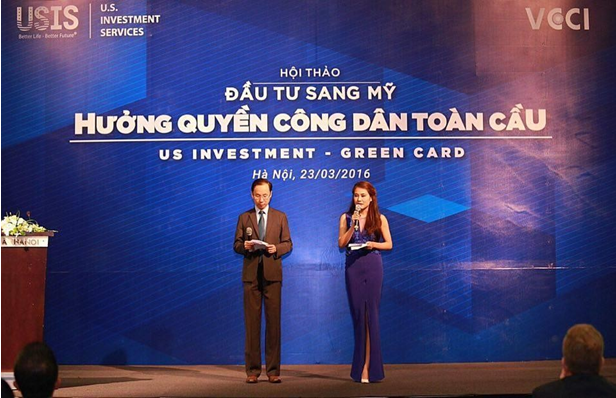 Mai Anh Thư trong vai trò MC cho một chương trình hội thảo đầu tư.