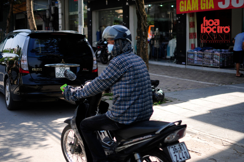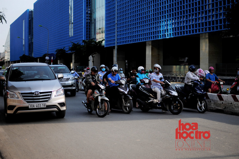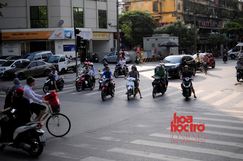Nhiều người dừng đèn đỏ chèn vạch để được đứng trong bóng râm.