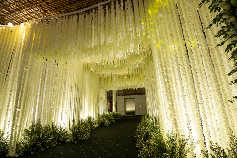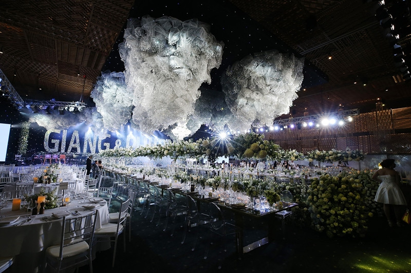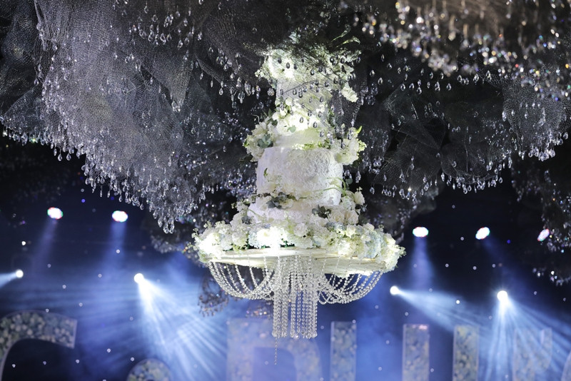 Theo tiết lộ của một nhân viên tại sự kiện, sẽ có màn thả bánh kem từ trên cao xuống khi cô dâu - chú rể làm lễ.