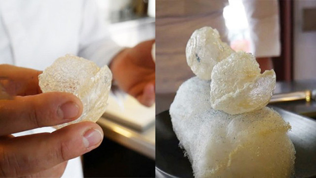 Công đoạn đặc biệt nhất tạo ra những viên "không khí chiên" là đưa đám mây vào hộp kín rồi sục không khí chứa phân tử ozone vào. Những phân tử ozone nguyên liệu cho món "không khí chiên" này đều đến từ những vùng cao tạo nên mùi vị trong sạch và thơm thanh khó tả.