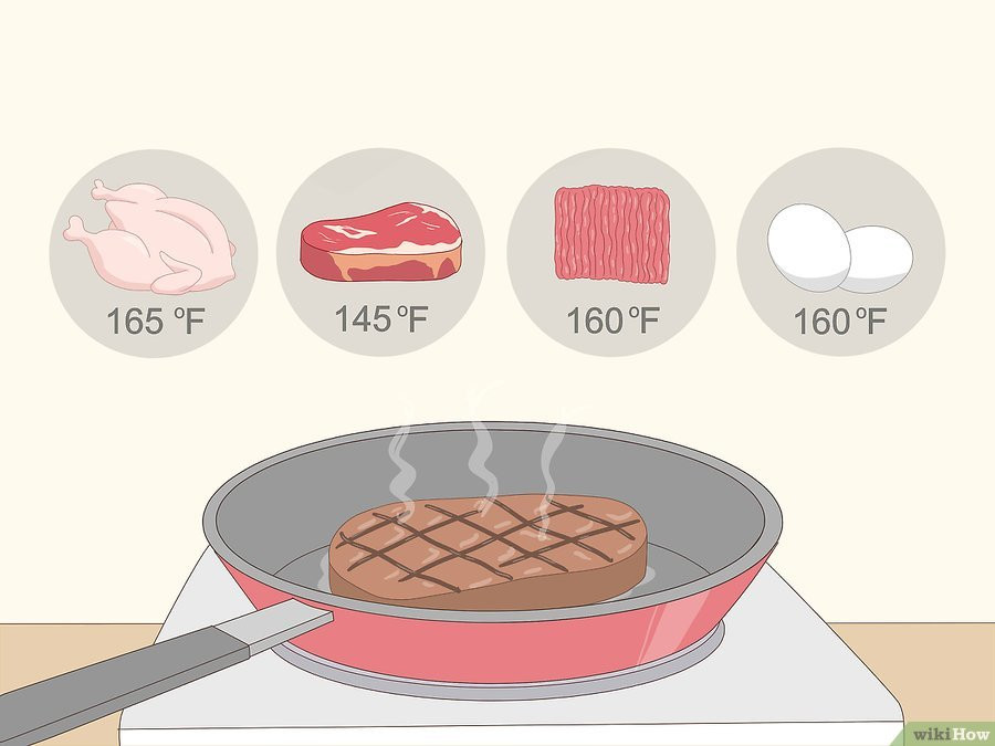 Thịt lợn và thịt bò nên nấu ở 145 °F (63 °C).