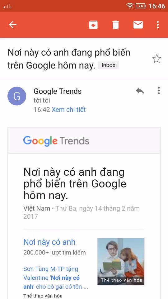 Theo thống kê, "món quà Valentine dành tặng fan" này của Sơn Tùng M-TP đã vượt mặt các MV ca nhạc khác trên thế giới và xếp vị trí thứ 7 trong bảng xếp hạng các MV nổi bật trong ngày trên Kworb.net. Không chỉ vậy, Nơi này có anh cũng trở thành một trong những từ khóa nổi bật nhất tại Việt Nam trên Google với hơn 200.000 lượt tìm kiếm.