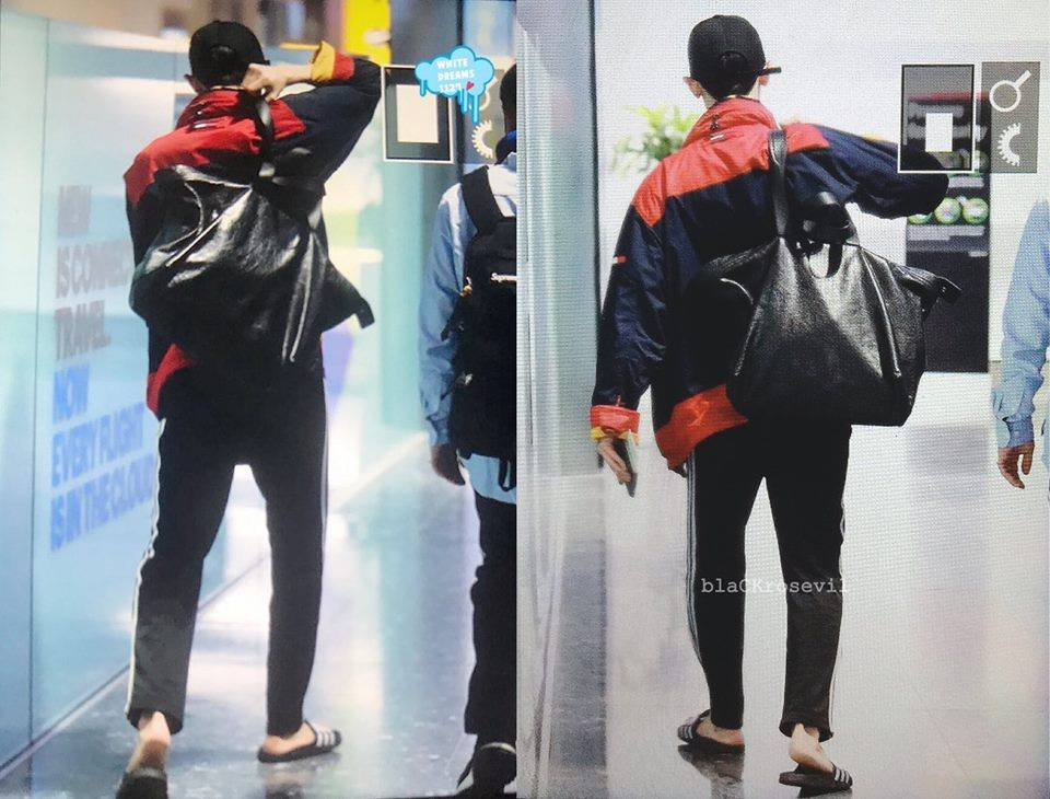 Và đây là Chanyeol của đời thường. Vẫn chiếc áo khoác nổi bật ấy, nhưng anh chàng đã kịp thay quần và xỏ đôi dép lê khác đến không nhận ra luôn.