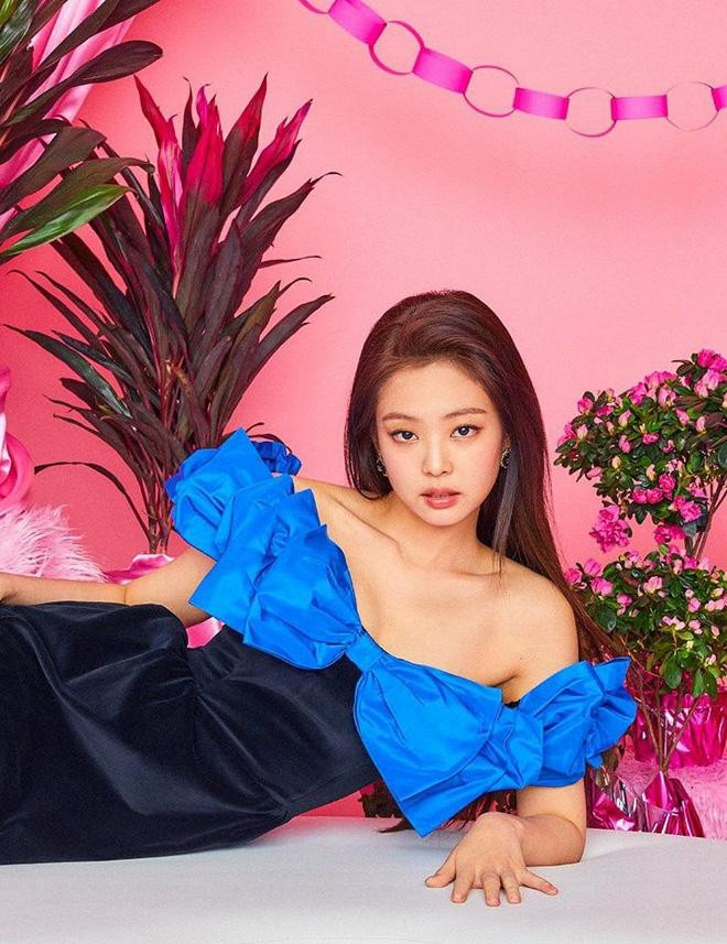 Bên cạnh áo nơ to bản, Jennie còn thích mặc những mẫu váy đính nơ cách điệu. Trong lần lên bìa tạp chí Billboard, Jennie nổi bần bật với bộ váy xanh biếc với chiếc nơ vắt từ ngực sang vai.