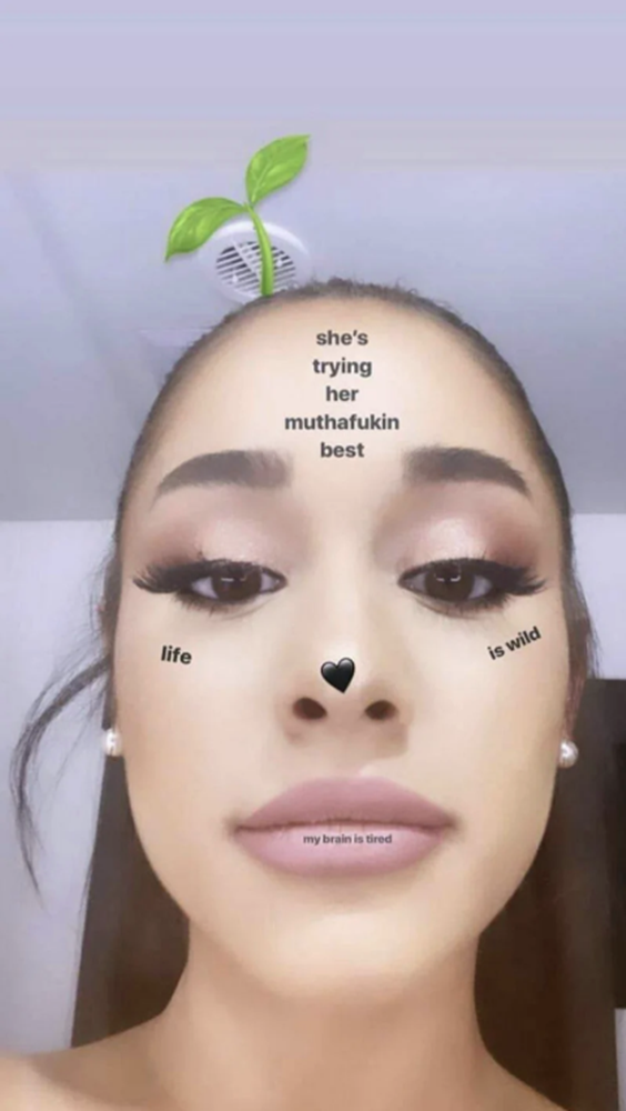 Kế đó, giọng ca Dangerous Woman đã đăng tải bức ảnh mình selfie cùng caption khiến người hâm mộ thêm phần lo lắng: “Não mình thật đau nhức và mệt mỏi, cuộc đời vẫn trôi nhanh đến không tưởng và mình đang cố gắng hết sức đây”.