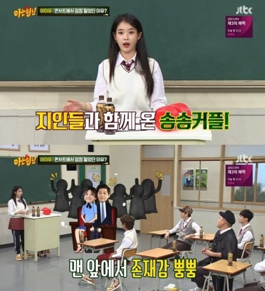 IU vừa mới làm khách mời trong show thực tế Knowing Bros, và nhắc lại buổi concert đáng nhớ nhất của mình. Đó chính là đêm diễn có vợ chồng Song Hye Kyo - Song Joong Ki đến xem.