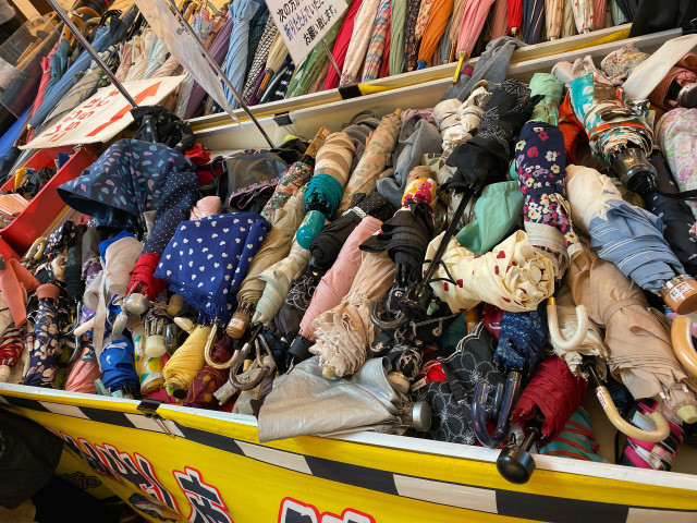 Hầu hết người Nhật có thói quen dùng ô, cũng vì thế món đồ này thường bị bỏ quên trên tàu điện ngầm nhiều nhất. Tại chợ Tetsudo Wasuremono Ichi, bạn có thể thỏa thích tìm mua một chiếc ô với đủ màu, đủ kiểu dáng để lựa chọn.