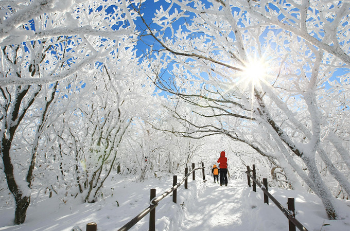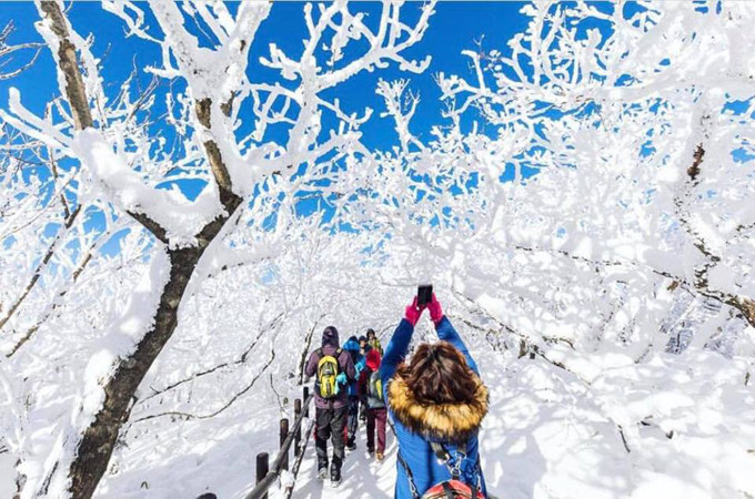 Những đợt không khí lạnh đang ảnh hưởng đến nhiều nước châu Á và đưa mùa đông lạnh giá đến với khu vực này. Ở Hàn Quốc, tuyết đã rơi cách đây vài tuần. Ở thủ đô Seoul, tuyết cũng phủ trắng xóa nhiều con đường, công viên. Người Hàn có thói quen đi leo núi ngắm tuyết vào mùa Đông và một trong những điểm đến nổi tiếng được nhiều người lựa chọn là vườn quốc gia núi Deogyusan (tỉnh Jeollabuk-do).