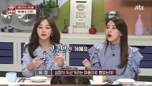 Trong chương trình Please Take Care of My Refrigerator của đài JTBC mà Kim Sejeong cùng Nayoung tham gia, người dẫn chương trình Kim Sung Joo đã ngập ngừng hỏi thăm “Tôi vẫn cứ băn khoăn không biết có nên hỏi hay không, về chuyện tên nhóm Gugudan ấy mà. Thực sự thì các bạn nghĩ thế nào về cái tên này?”.