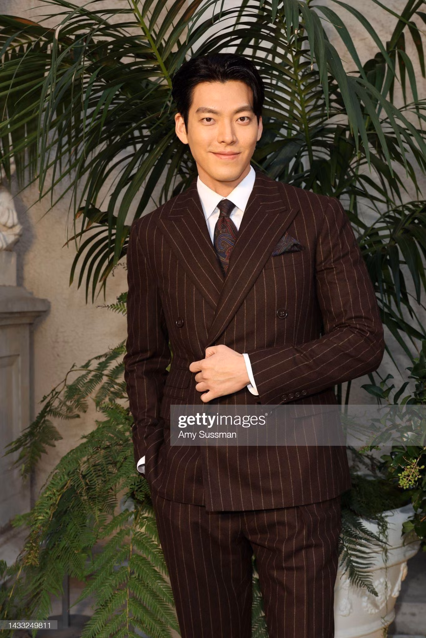 Kim Woo Bin diện suit, tóc vuốt ngược lộ trán khiến fan đổ gục vì vẻ nam tính, lịch lãm.