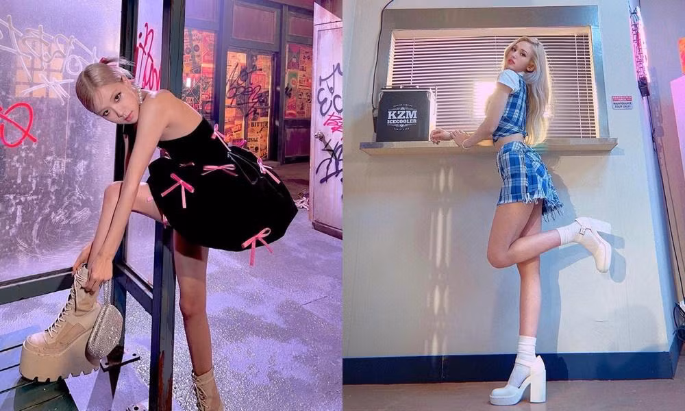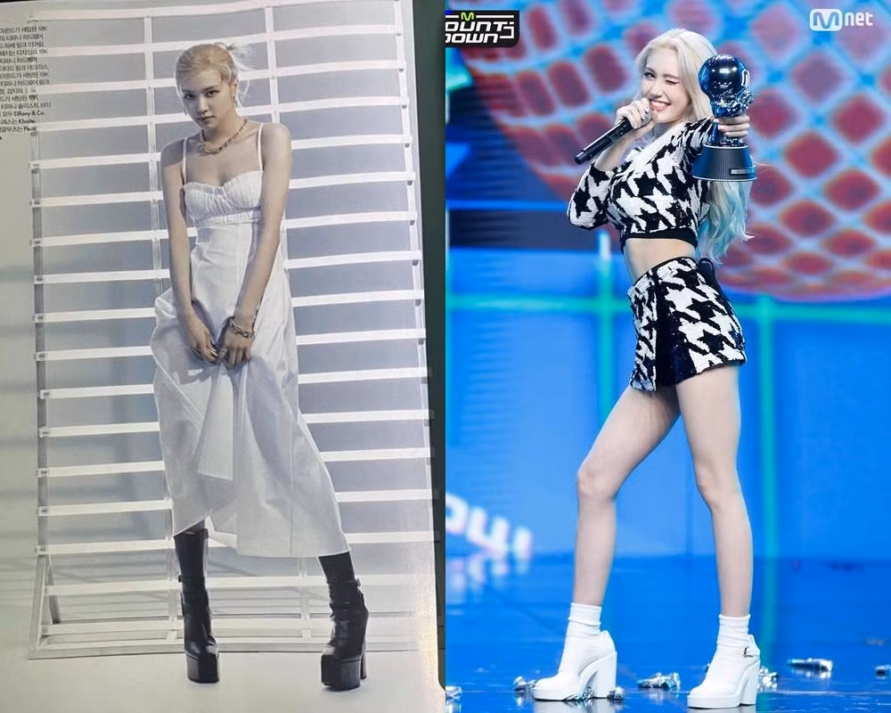 Mới đây, khán giả còn phát hiện cả hai cô gái thường xuyên diện những đôi giày có đế khổng lồ khi biểu diễn. Vì Rosé và Somi có đôi chân nhỏ nhắn nên nhìn càng tương phản với những kiểu giày cỡ lớn như thế này.