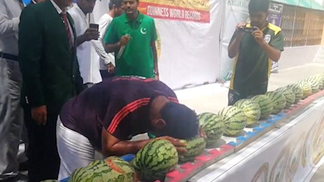 1. Dùng đầu đập vỡ 51 quả dưa hấu