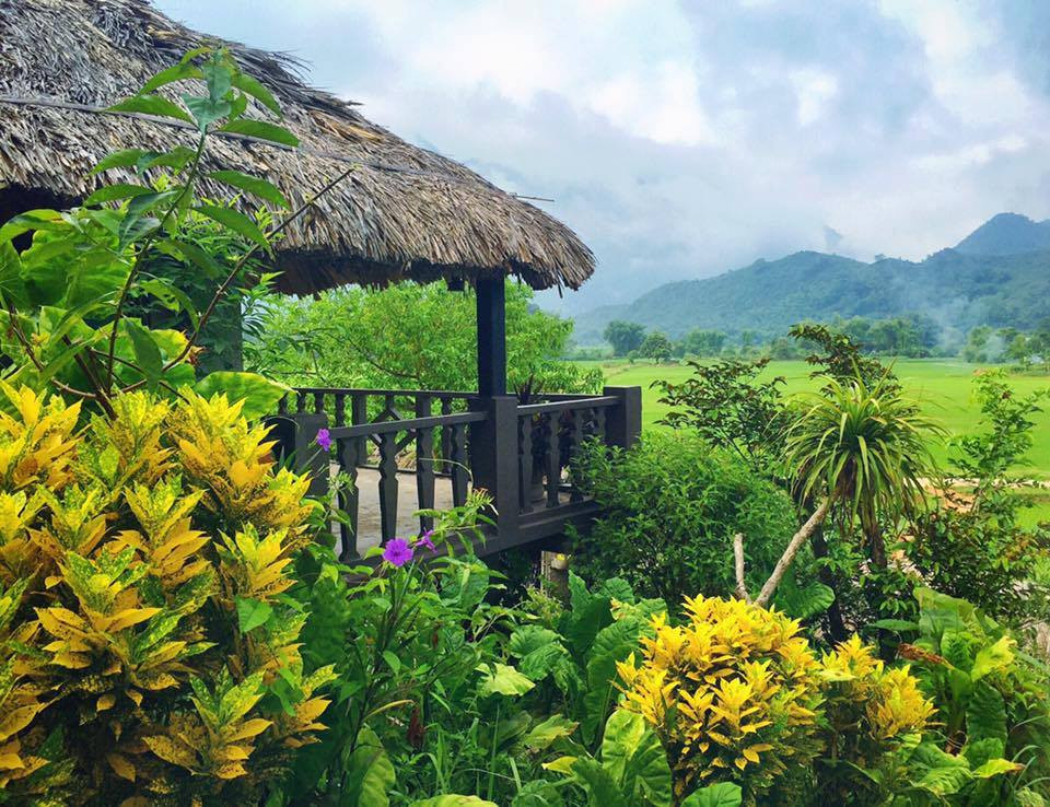 Mai Chau Ecolodge là khu du lịch sinh thái nằm giữa những cánh đồng lúa. (Ảnh: FB Mai Chau Ecolodge)