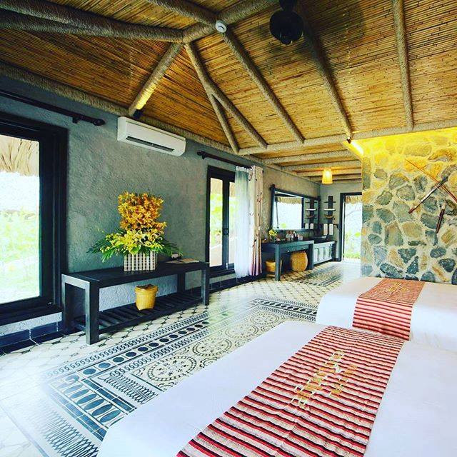 Các phòng nghỉ trong resort đều sử dụng những vật liệu tự nhiên có sẵn ở địa phương như tre, nứa... tạo thành đồ trang trí ấn tượng. (Ảnh: FB Mai Chau Ecolodge)