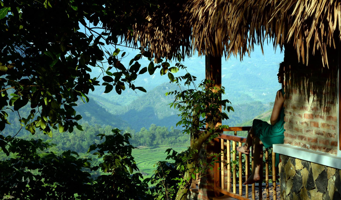 Ban công với khung cảnh đẹp miễn chê, tạo cho bạn cảm giác đang thật sự hoà mình vào thiên nhiên. (Ảnh: FB Puluong Retreat)