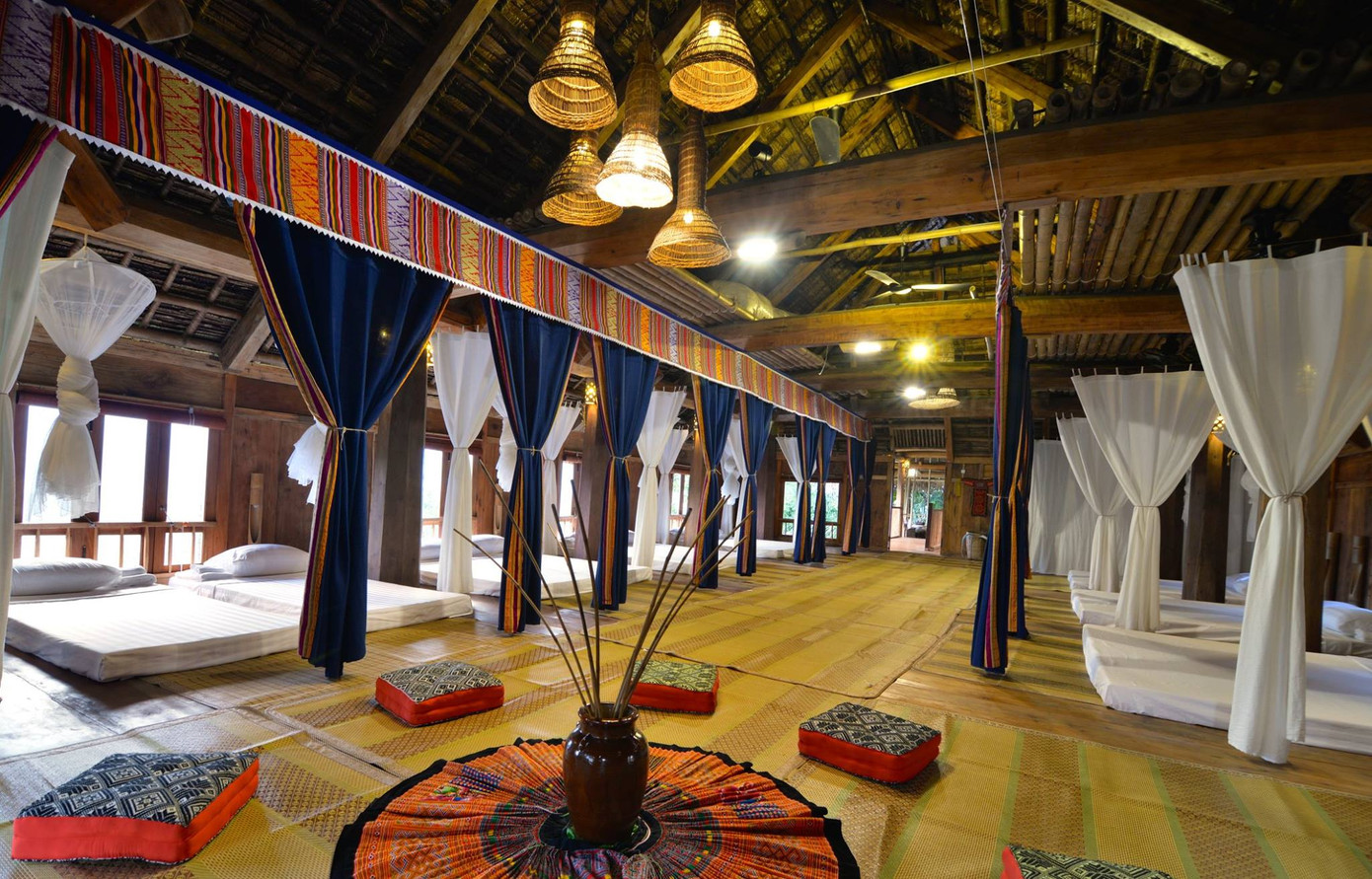 Ngoài các bungalow, nơi đây có mô hình nhà sàn ở ghép vô cùng thoáng mát, rộng rãi. (Ảnh: FB Puluong Retreat)