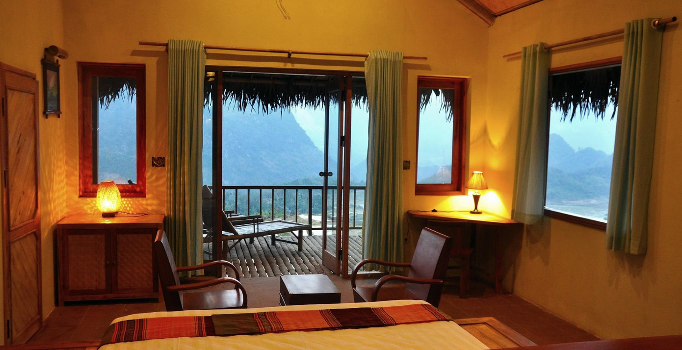Phòng nghỉ ở đây được thiết kế dạng bulgalow rất riêng tư với góc nhìn ra núi và đồng ruộng mênh mông. (Ảnh: FB Mai Chau Ecolodge)