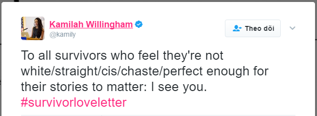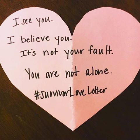 "Tôi ở đây. Và tôi tin bạn. Bạn không làm gì có lỗi cả. Bạn không bao giờ cô đơn."