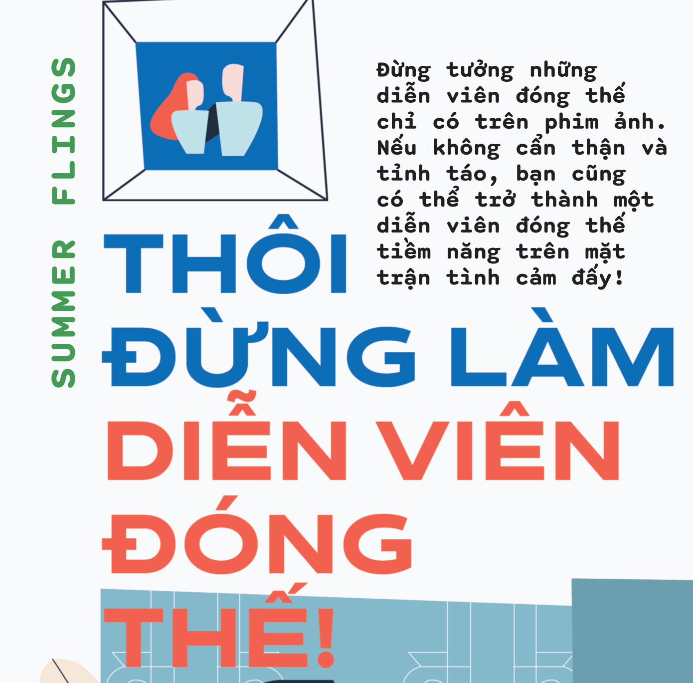 Một lời khuyên từ chuyên mục Summer Flings, rằng bạn cũng cần phải dè chừng để không trở thành một cascadeur của một ai đó trong phim trường tình cảm của chính mình. Đừng nghĩ đây chỉ là chuyện có trên phim thôi nhé, chỉ cần thiếu một chút tỉnh táo và tinh tế công thêm nhiều chút yêu thương, bạn hoàn toàn có thể rơi vào câu chuyện ngôn tình không có hậu này đấy!
