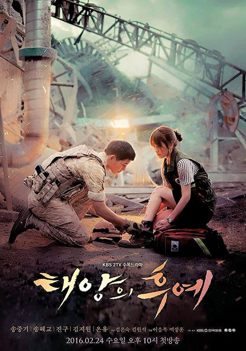 Ngay cả những người chưa từng xem Hậu duệ Mặt Trời, cũng sẽ nhớ hình ảnh trên poster phim. Đó là cảnh đại úy Yoo Shi Jin đang buộc dây giày cho bác sĩ Kang Mo Yeon. Tuy xung quanh là quang cảnh hoang tàn đổ nát của trận động đất, nhưng cử chỉ tình cảm mà hai người dành cho nhau vẫn vô cùng lãng mạn.