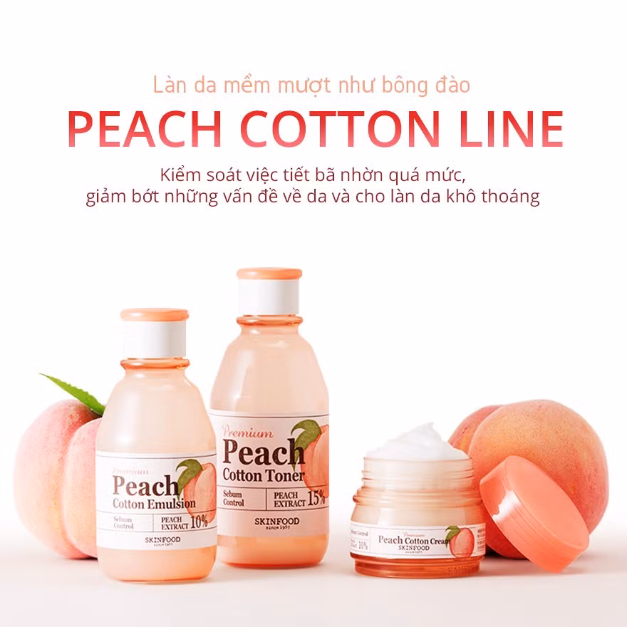 Không dừng lại ở đó, Skinfood còn sáng tạo nên những sản phẩm make-up như cushion và phấn phủ PEACH COTTON CUSHION SPF50+ PA++++, PEACH COTTON PORE PACT, PEACH COTTON MULTI FINISH POWDER thích hợp dùng hàng ngày vừa che phủ hoàn hảo cho làn da vừa kiểm soát lượng dầu trên khuôn mặt và khả năng chống nắng hiệu quả không gây kích ứng cho mọi loại da.
