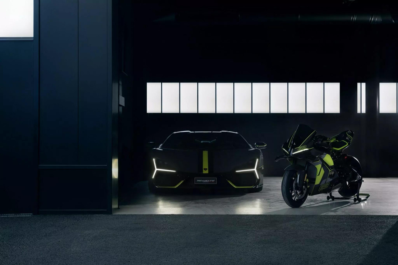 | Ducati Panigale V4 Lamborghini và siêu xe hybrid Lamborghini Revuelto. |