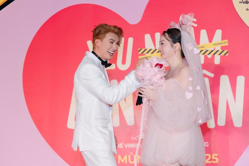 | Trần Ngọc Vàng, Kaity Nguyễn hóa thành cô dâu chú rể trên thảm đỏ. |
