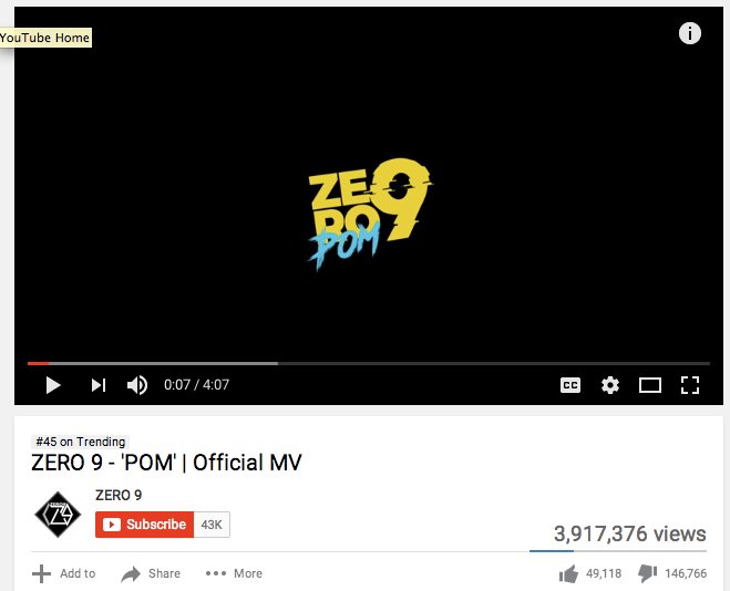 Giữ vai trò là ca khúc debut, POM trước đó được không ít người kì vọng sẽ tạo ra nhiều điều khiến công chúng ngạc nhiên lẫn trầm trồ. Quả thật, Zero9 đã làm tròn nhiệm vụ này, chỉ là theo một nghĩa khác. Hiện nay, MV POM với cách quay, màu sắc lẫn tạo hình “nhập màu” K-Pop đã cán mốc gần 4 triệu lượt xem trên YouTube và lọt vào Top 50 Trending. Theo đó, giai điệu của POM và các chàng trai Zero9 đã khiến gần 50.000 người ấn thích nhưng lại có sấp xỉ... 150.000 người nhấn nút “Dislike”.