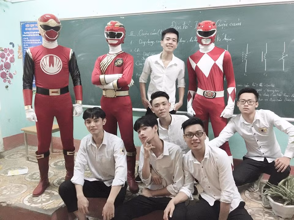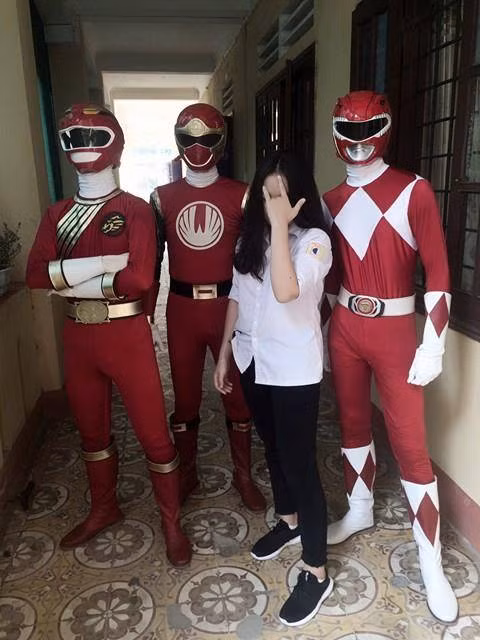 Được biết, ba bạn trẻ tình nguyện mặc bộ đồ siêu nhân kín bưng giữa thời tiết nắng nóng để mang lại một tiết mục đặc sắc và bất ngờ cho buổi Lễ khai giảng là 3 cậu bạn Đức Mạnh, Huy Khánh và Đức Nghĩa, hiện đang là học sinh trong trường. Ngay sau khi kết thúc màn biểu diễn, 3 cậu đã phải chạy ngay vào lớp để... thay đồ chỉ vì quá nóng. Trang phục siêu nhân của 3 bạn là do anh Đỗ Đức Mười, một cựu học sinh của trường thiết kế và làm ra và kế hoạch đã được mọi người ấp ủ để nhằm mang lại cho thầy cô và các bạn một món quà khai trường đặc biệt.
