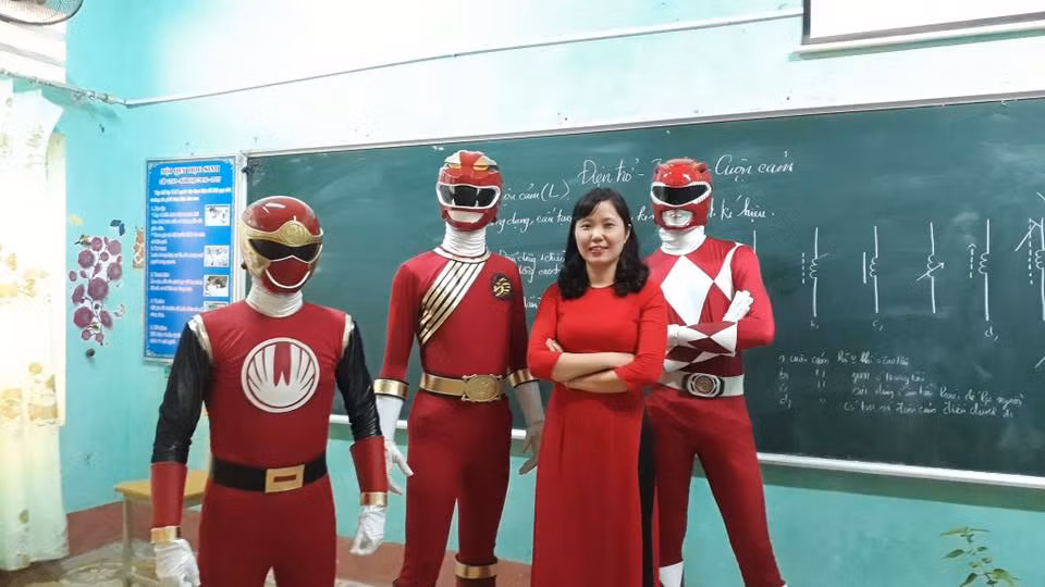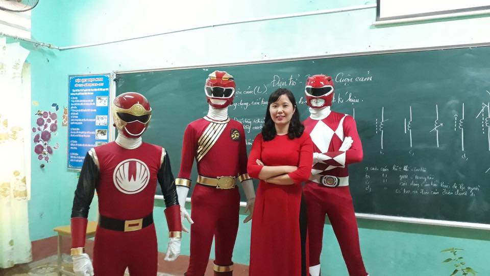 Đến cô giáo cũng không cưỡng lại được sức hút của bộ ba siêu nhân.
