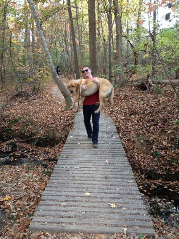 Chó nhà khác được đi chơi thì sướng phát điên, chó nhà tôi lại sợ đến nhũn người, đi không nổi đây này.