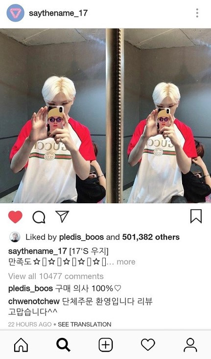 Có vẻ như người bạn được Woozi giới thiệu mua hàng là anh bạn Wonwoo cùng nhóm, bởi ngay sau đó Wonwoo cũng mau chóng đăng một tấm hình review ốp lưng với 100% hài lòng. “Mình mua ốp điện thoại hiệu Vernon theo lời bạn bè. Rất tốt, mình sẽ giới thiệu cho nhiều người khác nữa.”