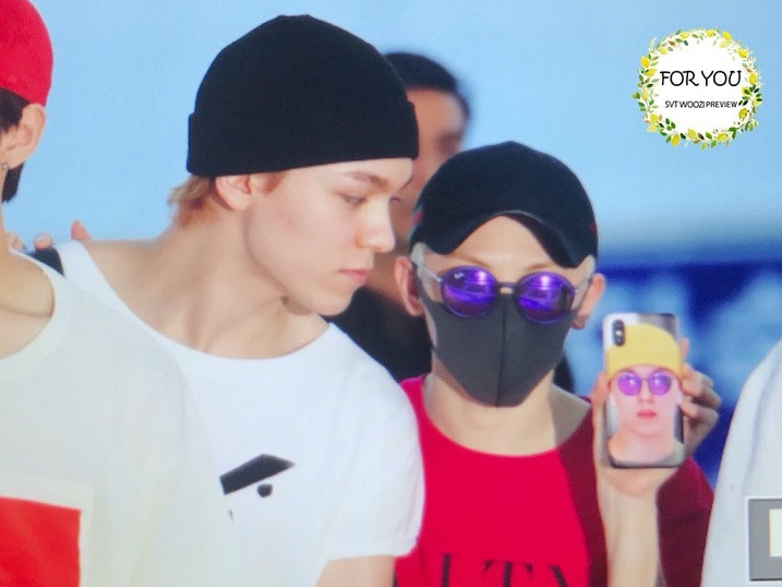 Mới đây, xuất hiện ở sân bay Incheon (Hàn Quốc) để bay tới Los Angeles tham dự KCON 2018, Woozi (SEVENTEEN) đã khiến các fan và phóng viên có mặt tại đây cười ngất khi khoe chiếc ốp điện thoại in khuôn mặt cậu em Vernon cùng nhóm. Trong hình, Vernon đội mũ trùm màu vàng và đeo kính mát gọng tròn, khuôn mặt “vô cảm” khá hài hước.