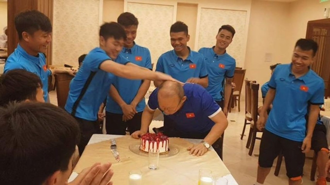 Theo đó, Ban Huấn luyện và các cầu thủ quây quần cùng nhau hát chúc mừng sinh nhật và tặng bánh kem cho Anh Đức, cầu thủ "cao tuổi nhất" trong lần họp quân này. Được biết, chiếc bánh được chính tay Văn Quyết cắm nến, tuy nhiên, mọi chuyện sau đó không phải là màn cầu nguyện, mà là cảnh Anh Đức bị úp bánh kem lên mặt.