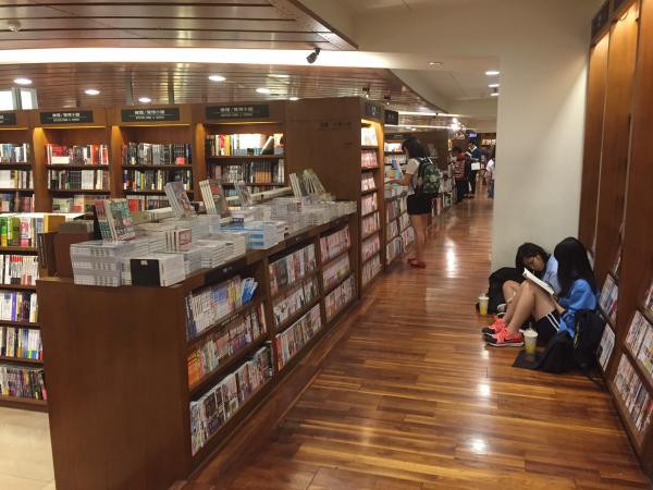 Eslite là chuỗi hệ thống nhà sách lớn nhất ở Đài Loan, mở cửa 24/7. Điểm hay ho chính là ở Eslite mọi người tha hồ đọc bất kỳ cuốn sách nào mình thích, ngồi bao lâu tuỳ ý, và an toạ ở bất kỳ đâu trong nhà sách tuỳ chọn - miễn là không ngồi bít lối đi làm ảnh hưởng người khác. Những bạn trẻ ngồi trong một góc với ly trà sữa Đài Loan đặc trưng say sưa đọc, những cô chú lớn tuổi thì chọn ngồi ở khu bàn đọc cho khách, khu này có hệ thống đèn đọc riêng, thậm chí có cả bút viết để ghi chú... Nhìn cứ như thư viện chứ chả phải nhà sách í! Nhà sách thì đẹp xinh lộng lẫy, thơm phức mùi giấy mới và luôn có nhạc không lời nhẹ nhàng chảy tràn khắp nơi. Sách, truyện, tạp chí trong và ngoài nước đầy ăm ắp.