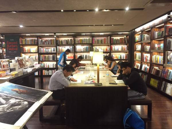 Tớ đem thắc mắc hỏi nhỏ bạn người Đài Loan, nếu mở cửa cho khách đọc miễn phí thế này thì… lỗ vốn chắc. Nhưng khu nhà sách có tận mấy tầng lầu, bạn giải thích họ tích hợp cả khu văn phòng phẩm, cửa hàng thời trang, quán cà phê và ăn nhẹ... tạo nên một trung tâm mua sắm cho giới trẻ. Ở đây còn thường xuyên tổ chức các buổi chiếu phim, triển lãm nghệ thuật, dạy nấu ăn… nên cực kỳ thu hút du khách. Một ý tưởng kinh doanh thú vị chứ nhỉ!