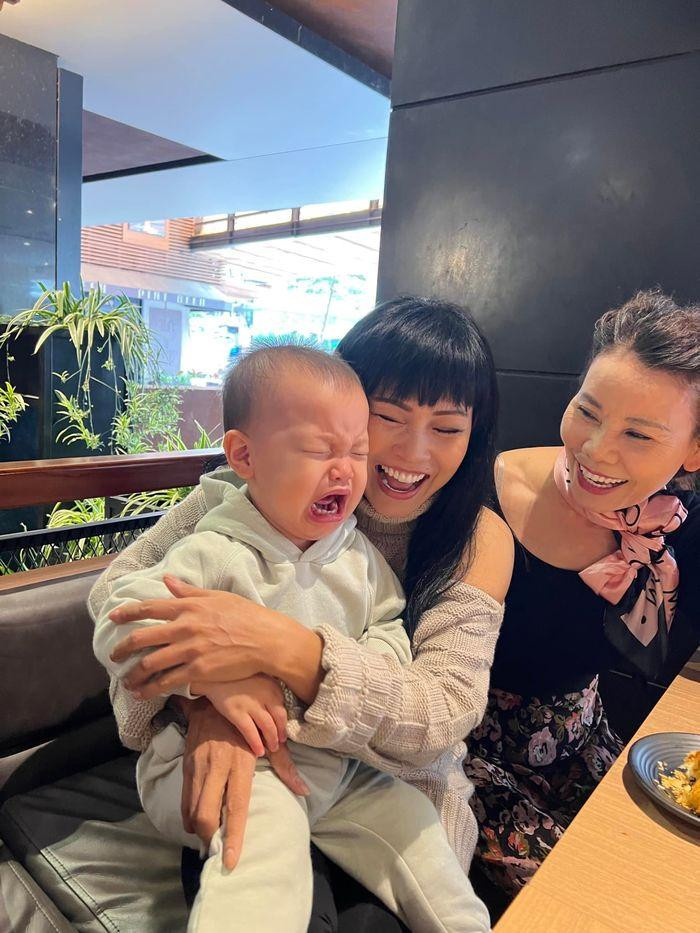 | Cặp song sinh nhà Hà Hồ "hợp tác" chơi đùa với siêu mẫu Thanh Hằng. |