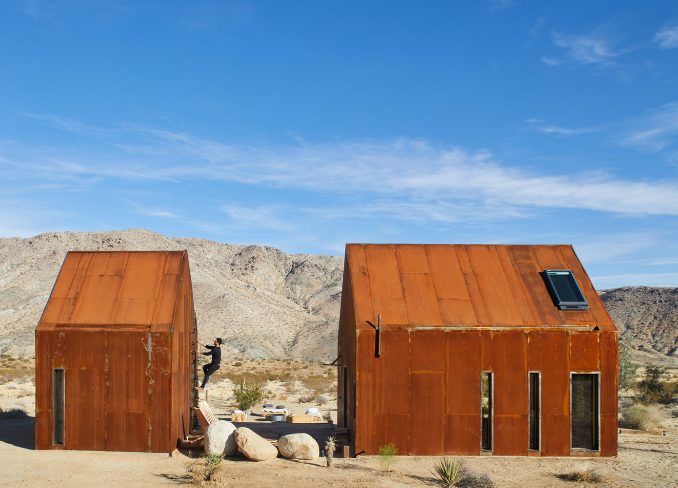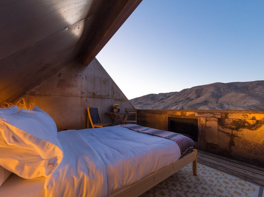 Cabin ngắm sao ngoài trời (Mỹ): Nơi trú ẩn kỳ quặc này tọa lạc ở vườn quốc gia Joshua Tree và được thiết kế với không gian hòa hợp giữa cuộc sống trong nhà và ngoài trời. Chỗ nghỉ có thể chứa từ 2-6 người. Phòng ngủ áp mái bao gồm giường lớn, tủ để đồ và cửa sổ khổng lồ trên mái. Tầng dưới có một giường sofa đôi. Ngoài ra, bạn có thể ngắm nhìn bầu trời đêm tuyệt đẹp trước khi chìm vào giấc ngủ ở căn nhà nhỏ không có mái nhà ngay cạnh đó.