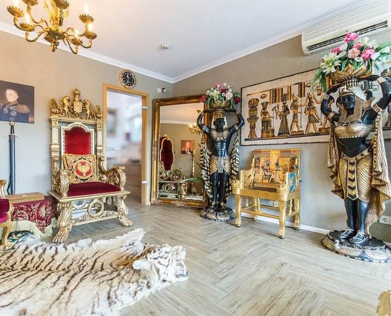Ngôi nhà Ai Cập (Đức): Ngôi nhà được trang trí với những đồ vật độc đáo, bao gồm thảm da hổ, tượng người kiểu Ai Cập và ghế ngồi như chiếc ngai vàng khổng lồ. Chủ sở hữu ngôi nhà nói rằng, với thiết kế đặc biệt và khác thường khiến nhiều người thích thú, nơi đây đã xuất hiện nhiều lần trên các chương trình truyền hình và phim ảnh.