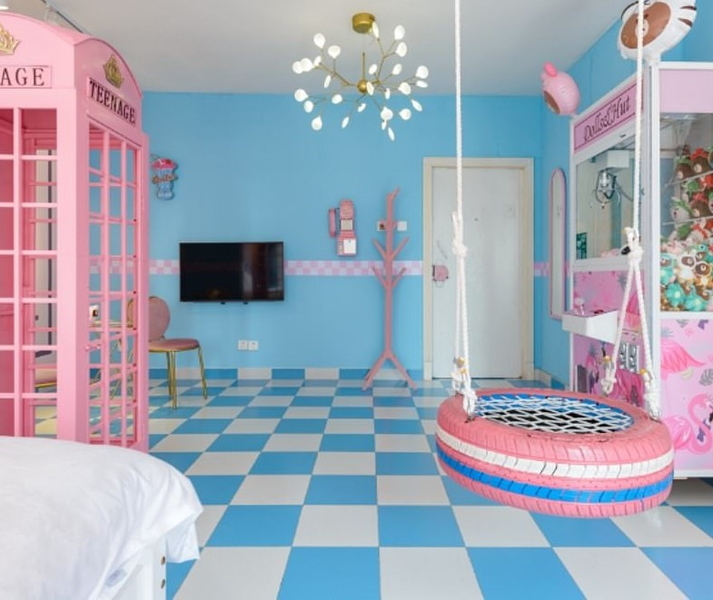 Căn hộ giấc mơ (Trung Quốc): Ngôi nhà cho thuê được trang trí trông giống như phòng ngủ của một cô gái tuổi mới lớn. Căn hộ được trang trí màu xanh da trời, hồng chủ đạo, ngoài ra còn bao gồm một hộp điện thoại kiểu London, cỗ máy chơi điện tử và chiếc xích đu được làm từ lốp xe.