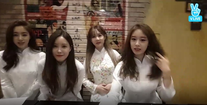 Tối hôm qua, Ji Yeon, Qri, Hyomin và Eunjung đã xúng xính diện áo dài trắng đến dùng bữa tại một nhà hàng Việt Nam ở Hàn Quốc. Các cô gái không quên livestream cho tất cả các fan trên V Live theo dõi.