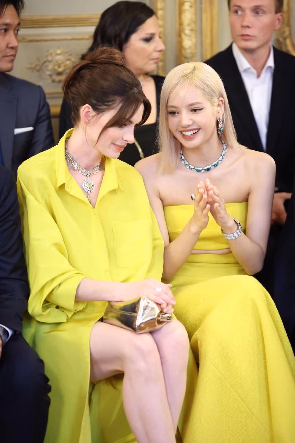 Tham dự triển lãm trang sức và đồng hồ cao cấp của BVLGARI tại Paris, Pháp, Lisa BLACKPINK có dịp hội ngộ hai người đẹp đình đám khác là nữ minh tinh Anne Hathaway và Hoa hậu đẹp nhất lịch sử Priyanka Chopra.