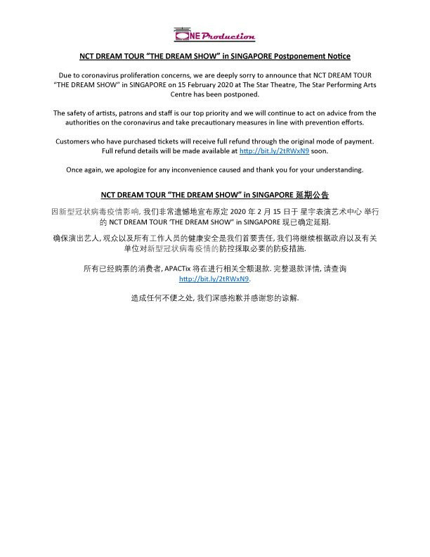 Đơn vị tổ chức cho biết sự an toàn của các nghệ sĩ, khách hàng và nhân viên là ưu tiên hàng đầu và công ty sẽ tiếp tục hành động theo lời khuyên từ chính quyền về virus Corona, đồng thời thực hiện các biện pháp phòng ngừa phù hợp.