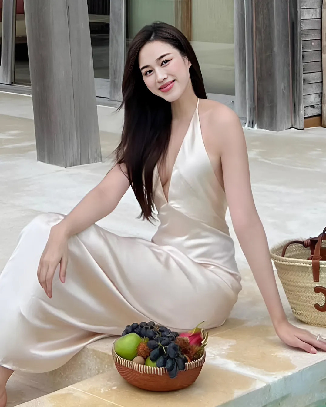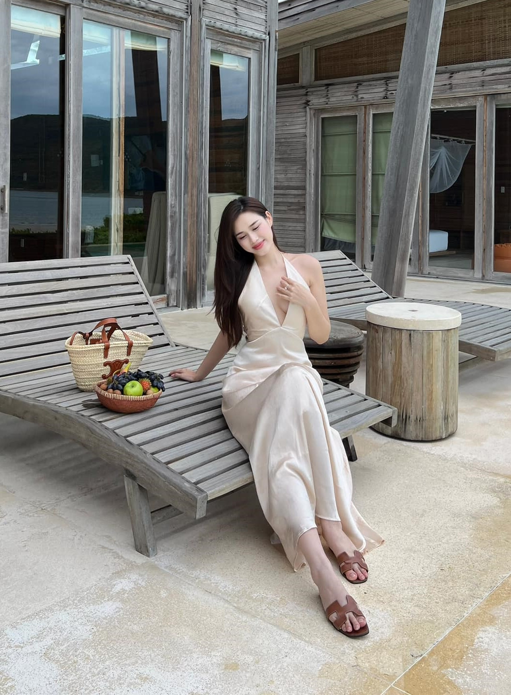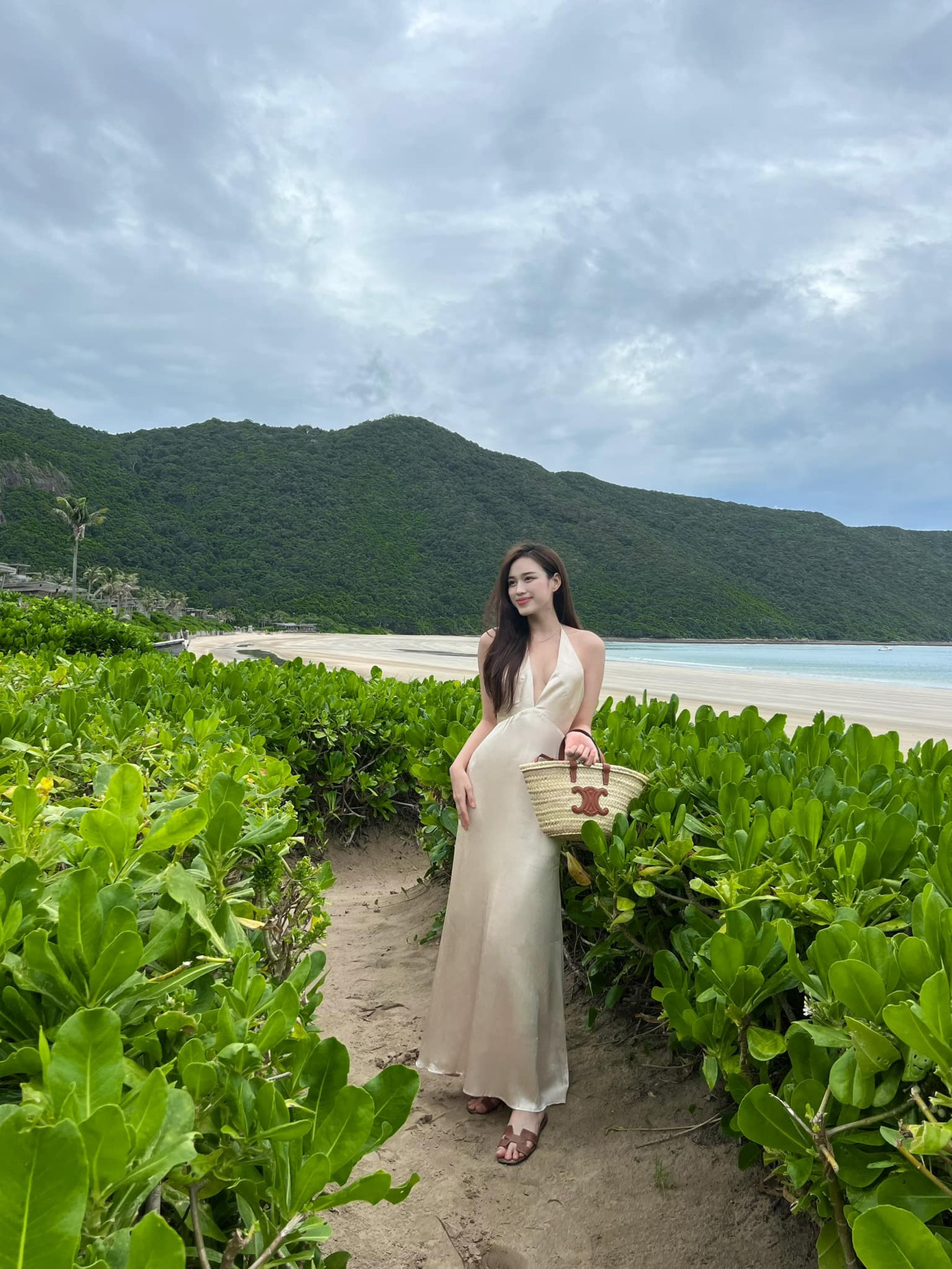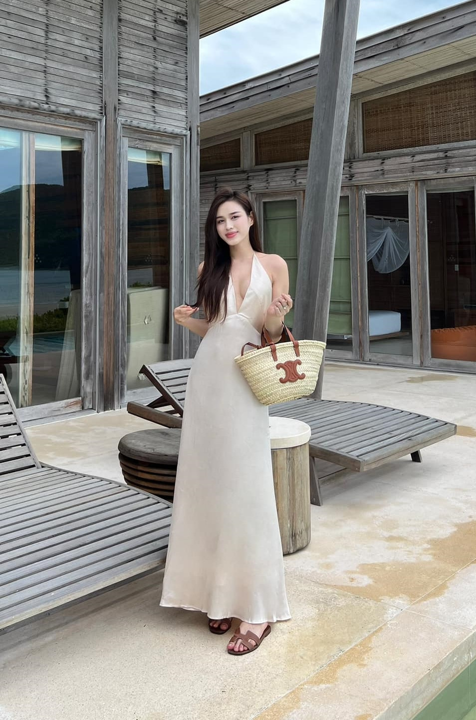 Nếu không phải váy trắng thì Đỗ Thị Hà cũng chọn váy suông màu nâu, màu be đầy trang nhã cho những chuyến đi nghỉ dưỡng.