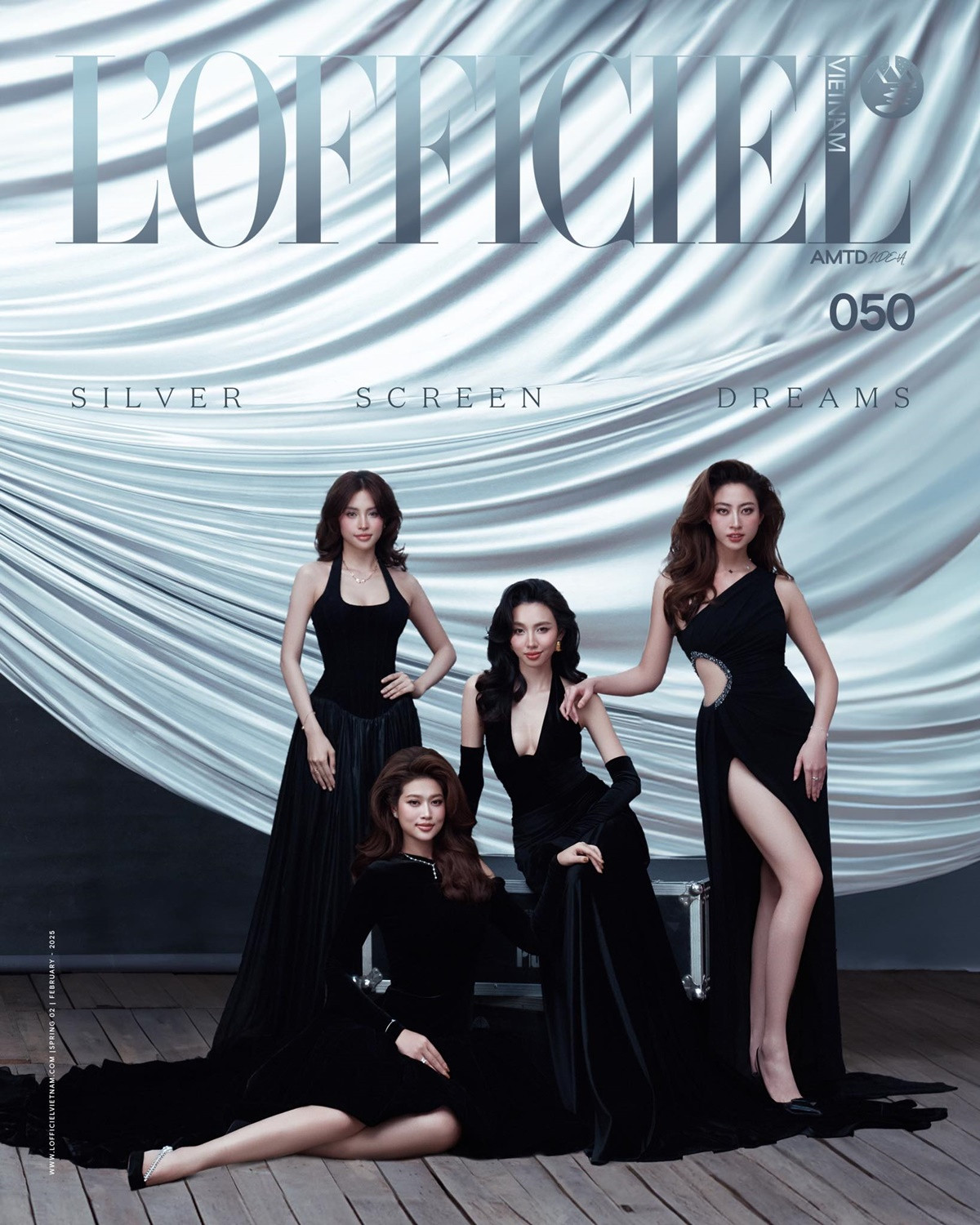 Bộ ảnh của tạp chí L’Officiel Việt Nam mang tên CINE, LOVE COVER I SILVER SCREEN DREAM, được chụp theo đúng chất điện ảnh: “Mỗi gương mặt, mỗi ánh mắt đều mang trong mình một khát khao riêng, nhưng tựu trung là tinh thần dấn thân và chinh phục. Họ không chỉ là những người đẹp trên sàn diễn mà còn là những diễn viên sẵn sàng bước vào ánh đèn máy quay, sống trọn vẹn trong từng vai diễn.”