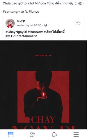 Vào 20h tối ngày 29/4, Sơn Tùng M-TP bất ngờ tung hình ảnh "nhá hàng" cho sản phẩm âm nhạc mới với dòng trạng thái ngắn ngủi: "#ChayNgayDi #RunNow #เรียกใช้เดี๋ยวนี้ #MTPEntertainment" khiến người hâm mộ vô cùng phấn khích.