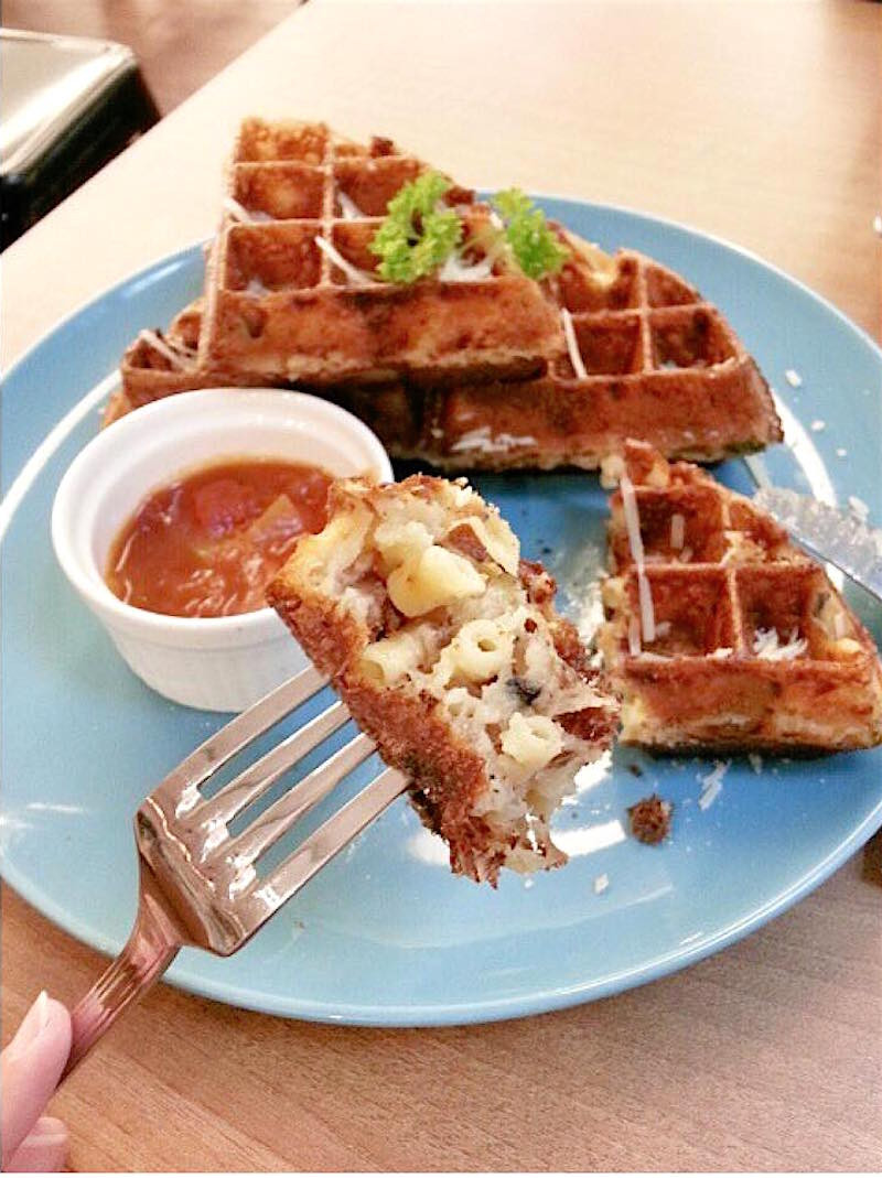 Nếu muốn trải nghiệm cảm giác mới lạ với những món ăn độc đáo, các bạn cũng có thể thử ghé qua Montana, nhà hàng chuyên phục vụ các món mì Ý ăn kèm những miếng bánh waffle nóng hổi và cheese.