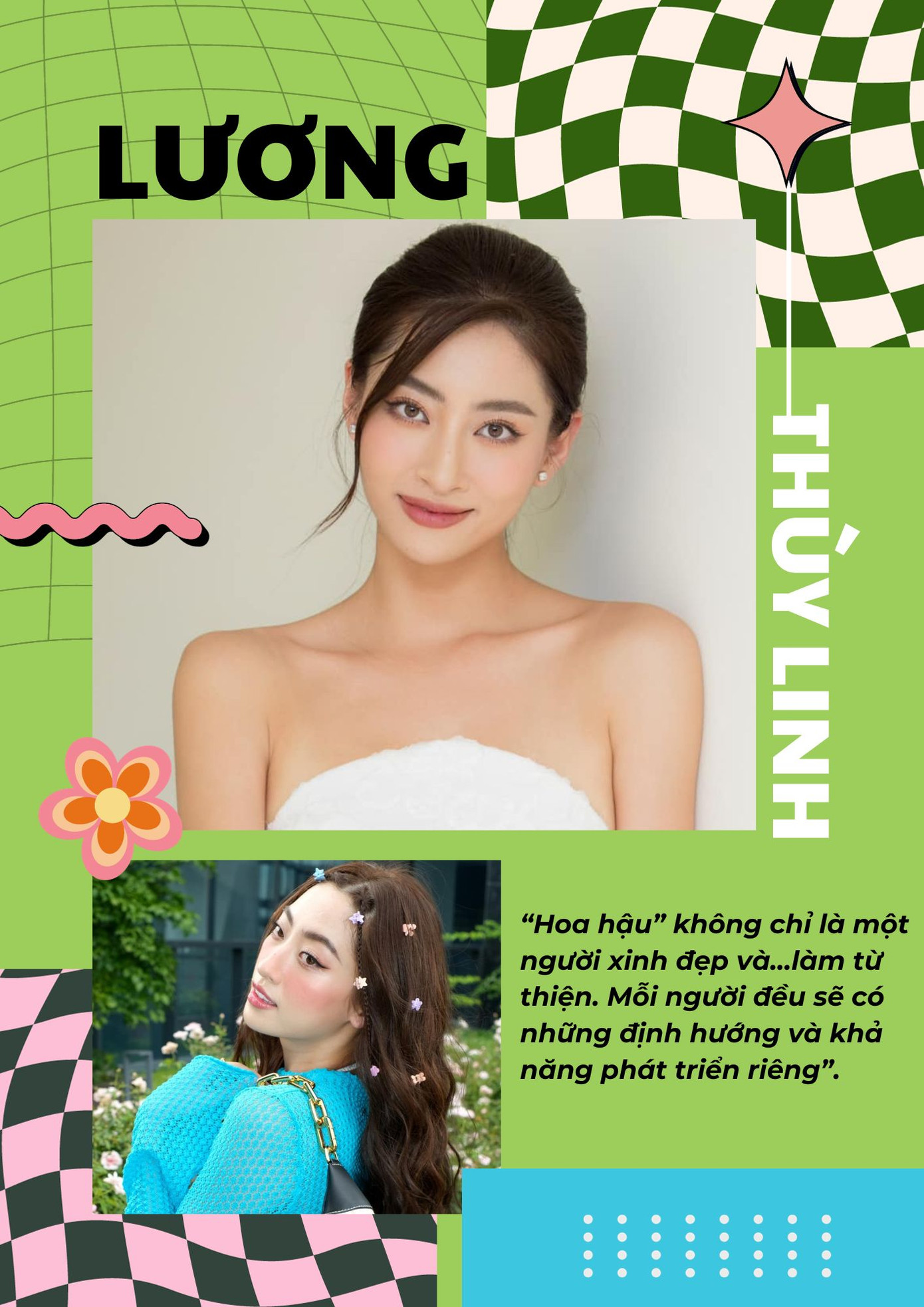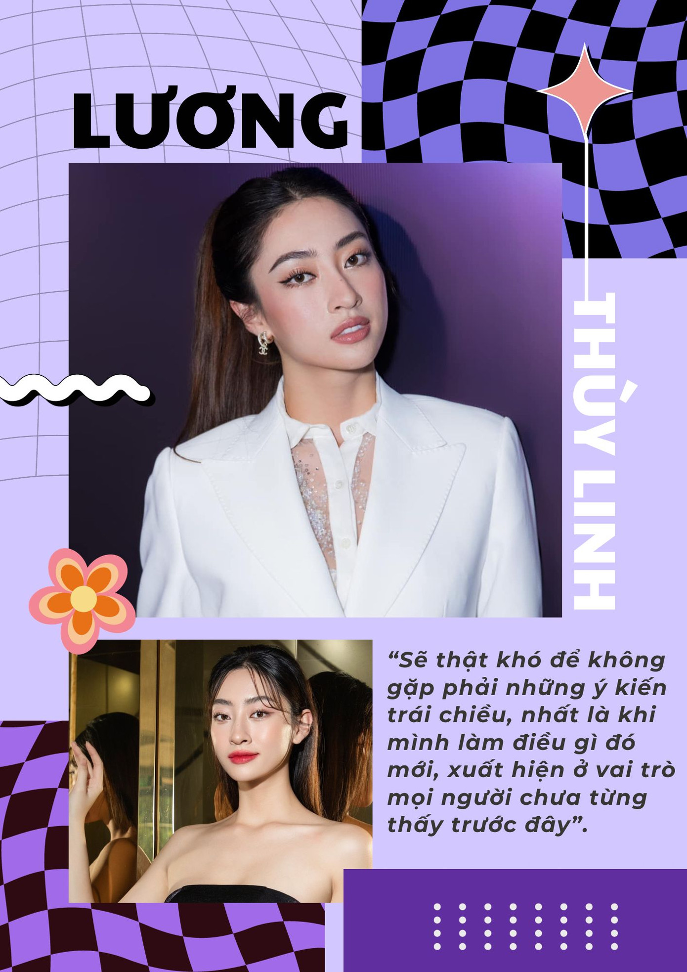 Cả hai đều sẽ là Lương Thùy Linh - người luôn làm tốt nhất trong khả năng của mình. Ở vị trí Hoa hậu, Linh sẽ xuất hiện chỉn chu và truyền cảm hứng tích cực đến mọi người. Ở vai trò diễn viên, mình sẽ trau dồi bản thân bằng kinh nghiệm “thực chiến” và ngày một tiến bộ hơn.