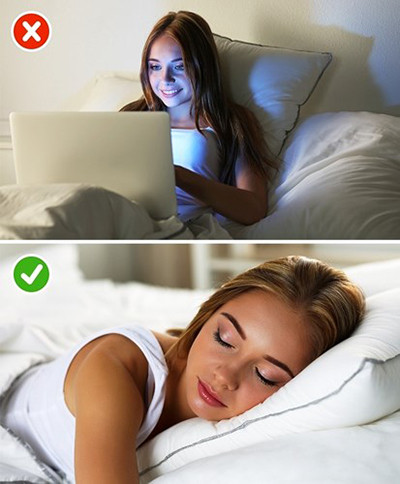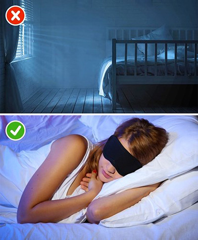 Ngay cả ánh sáng nhỏ nhất từ đèn LED của các thiết bị điện làm rối loạn giấc ngủ của bạn. Nên loại bỏ tất cả các nguồn ánh sáng, hoặc đeo bịt mắt khi đi ngủ.