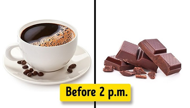 Caffeine: Caffeine có ảnh hưởng không tốt đến giấc ngủ. Nó không chỉ được tìm thấy trong cà phê mà còn trong trà, sôcôla và một số sản phẩm khác. Do đó, nên hạn chế dùng thức ăn có chứa caffein vào buổi tối.